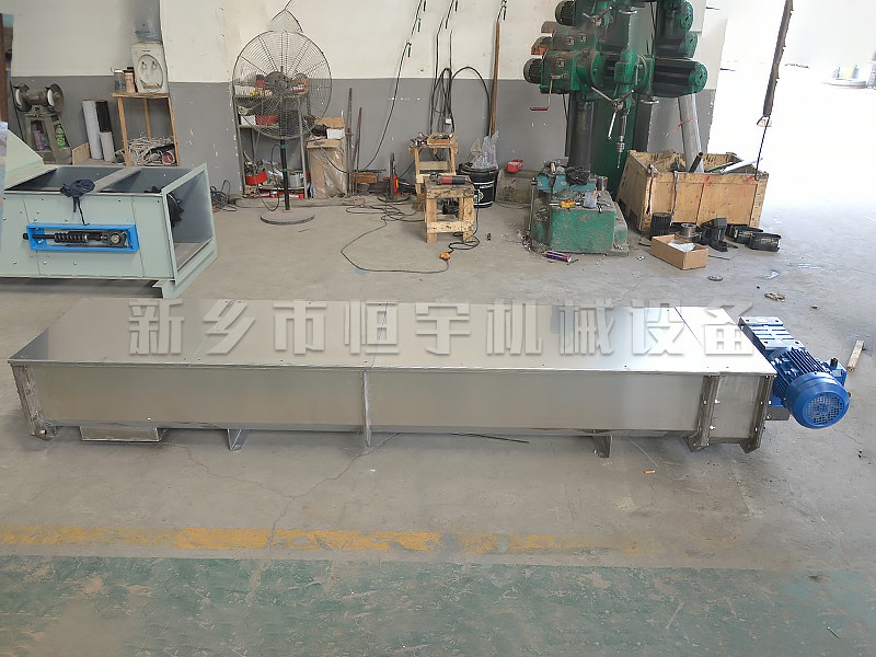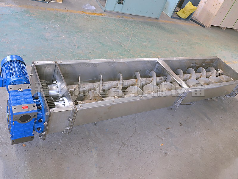 螺旋輸送機分為U型螺旋輸送機和圓管式螺旋輸送機。螺旋輸送機的機殼水平安裝時一般為U形槽,傾斜角度較大或豎直固定時一般為圓管式的;螺旋輸送機由軸和在軸上沿螺旋線布置的葉片組成。輸送干燥的、粘性小的粉、粒狀物料時用實體葉片螺旋;輸送粘性較大的或塊狀物料時用帶式葉片螺旋;輸送易結(jié)團物料時用槳式葉片螺旋,這種螺旋除推動物料外還有打散結(jié)團的作用。輸送距離一般在70米以內(nèi),螺旋的投影直徑在1250毫米以下。螺旋輸送機可在多處裝料、卸料,密封性好,可輸送溫度低于200℃的物料。