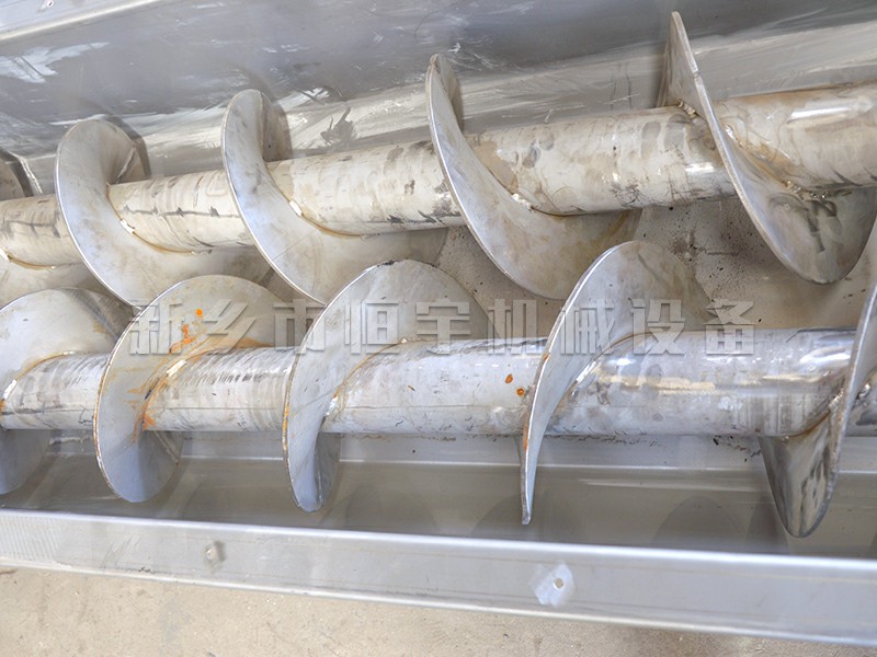 螺旋輸送機的工作原理是旋轉(zhuǎn)的螺旋葉片將物料在槽或管中推移而得到輸送物料的目的,散料在自重和機殼的摩擦力作用下堆積在槽的下部,不隨葉片旋轉(zhuǎn)而被葉片推動前進。螺旋輸送機旋轉(zhuǎn)軸上焊的螺旋葉片,葉片的面型根據(jù)輸送物料的不同有實體面型、帶式面型、葉片面型等型式。螺旋輸送機的螺旋軸在物料運動方向的終端有止推軸承以隨物料給螺旋的軸向反力,在機長較長時,應(yīng)加中間吊掛軸承。